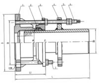 限位伸縮接頭是在AF型法蘭松套補(bǔ)償接頭的基礎(chǔ)上增設(shè)限位螺柱而成,最大伸縮量處用雙螺母鎖定,補(bǔ)償因熱脹冷縮和地基沉降引起的管線軸向位移及撓曲和偏心,從而保護(hù)閥門的設(shè)備。根據(jù)連接方式的不同分為單法蘭限位伸縮接頭和雙法蘭限位伸縮接頭。